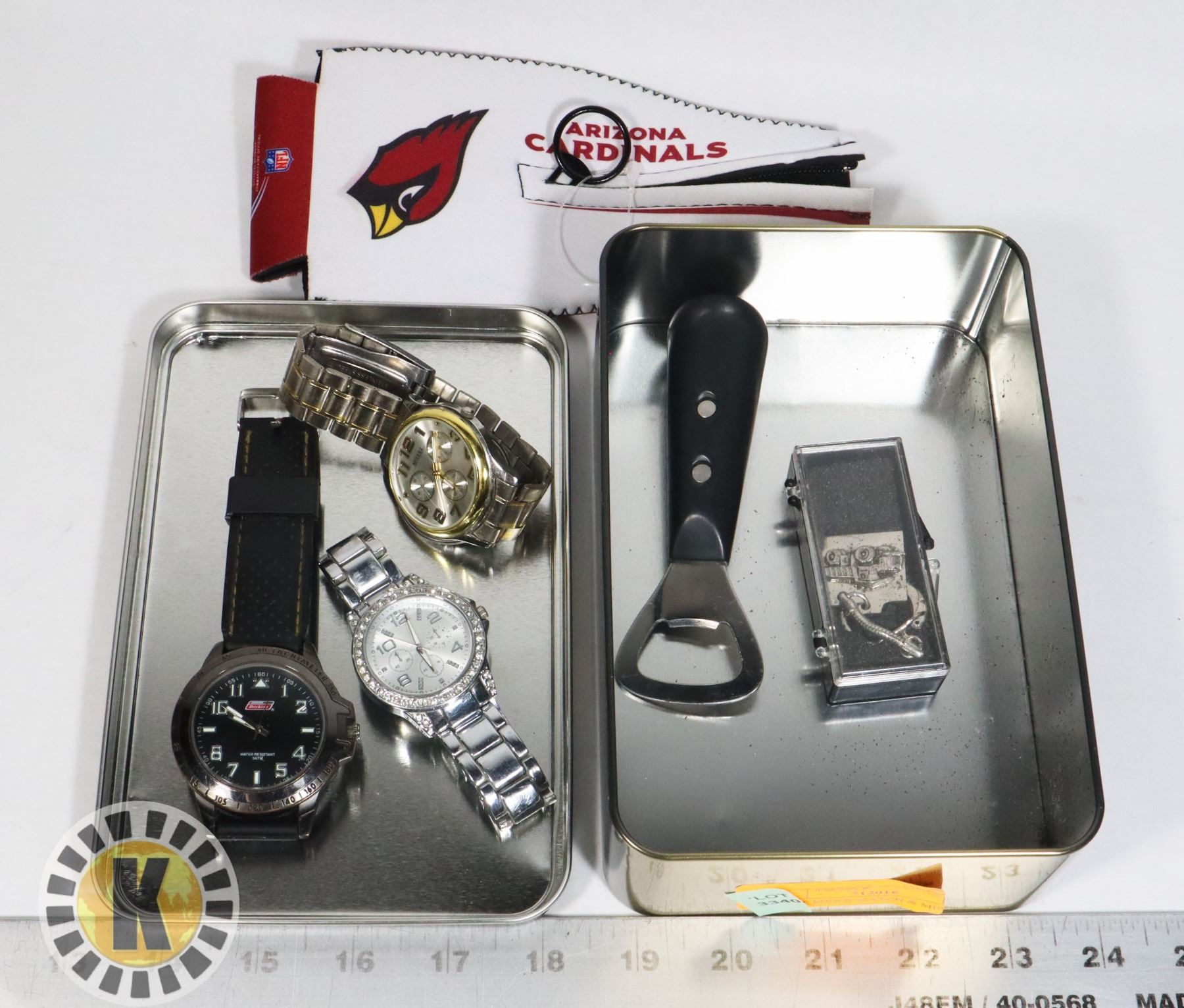 BOX OF MEN'S WATCH & MISC. ITEMS