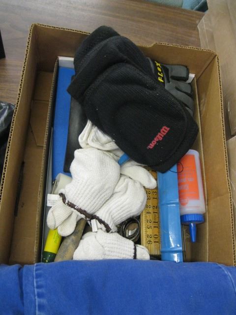 BOX OF MISC GLOVES, COVERALLS ETC.