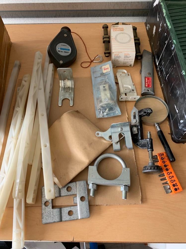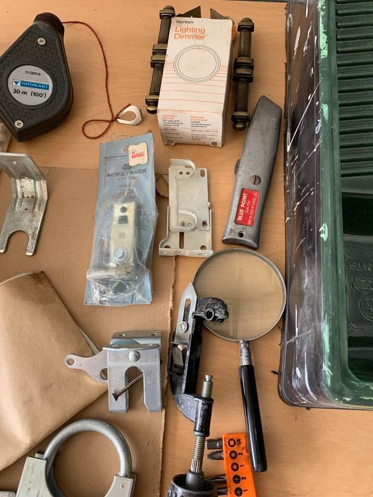 BOX OF MISC HARDWARE AND PAINT TRAY (WITHINSERT)