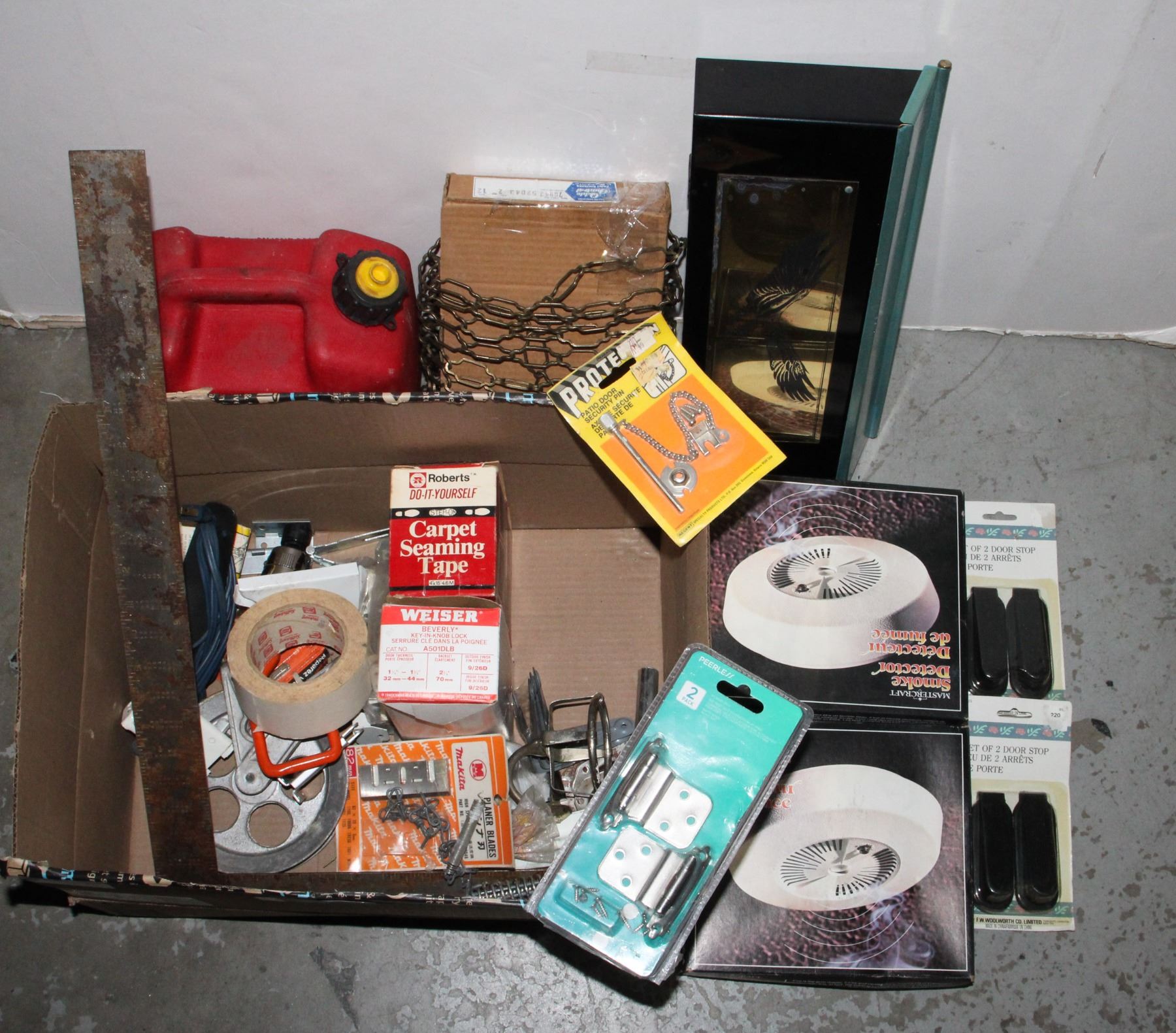 BOX OF MISC. HOUSEHOLD AND YARD ITEMS