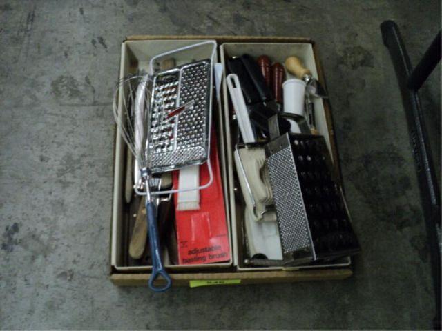 BOX OF MISC KITCHEN UNTENSILS