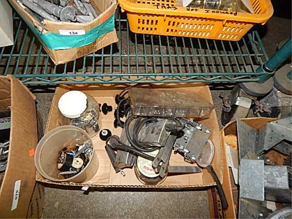 BOX OF MISC, TIMING LITE, CERAMIC KNOBS, AND MORE