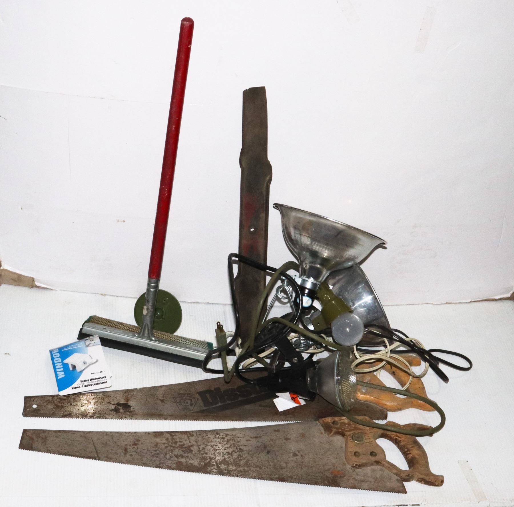 SAWS, LAWNMOWER BLADE, HEAT LAMP, AND MORE