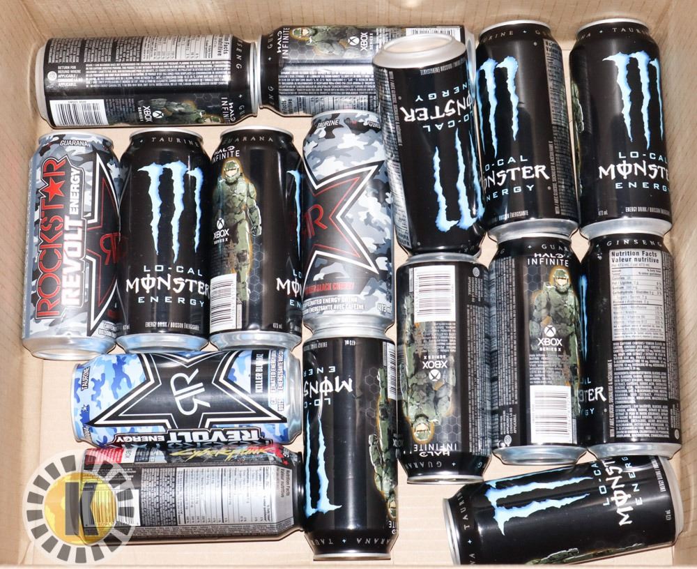 BOX OF MONSTER AND ROCKSTAR ENERGY DRINKS