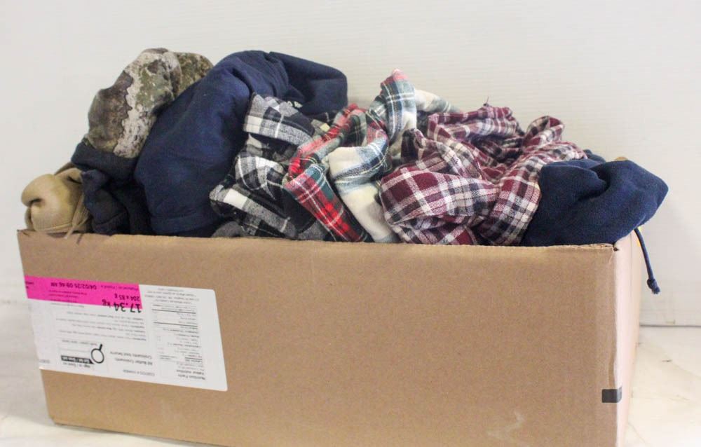 BOX OF NEW 3 LARGE HOODIES AND 4 LARGE SHIRTS