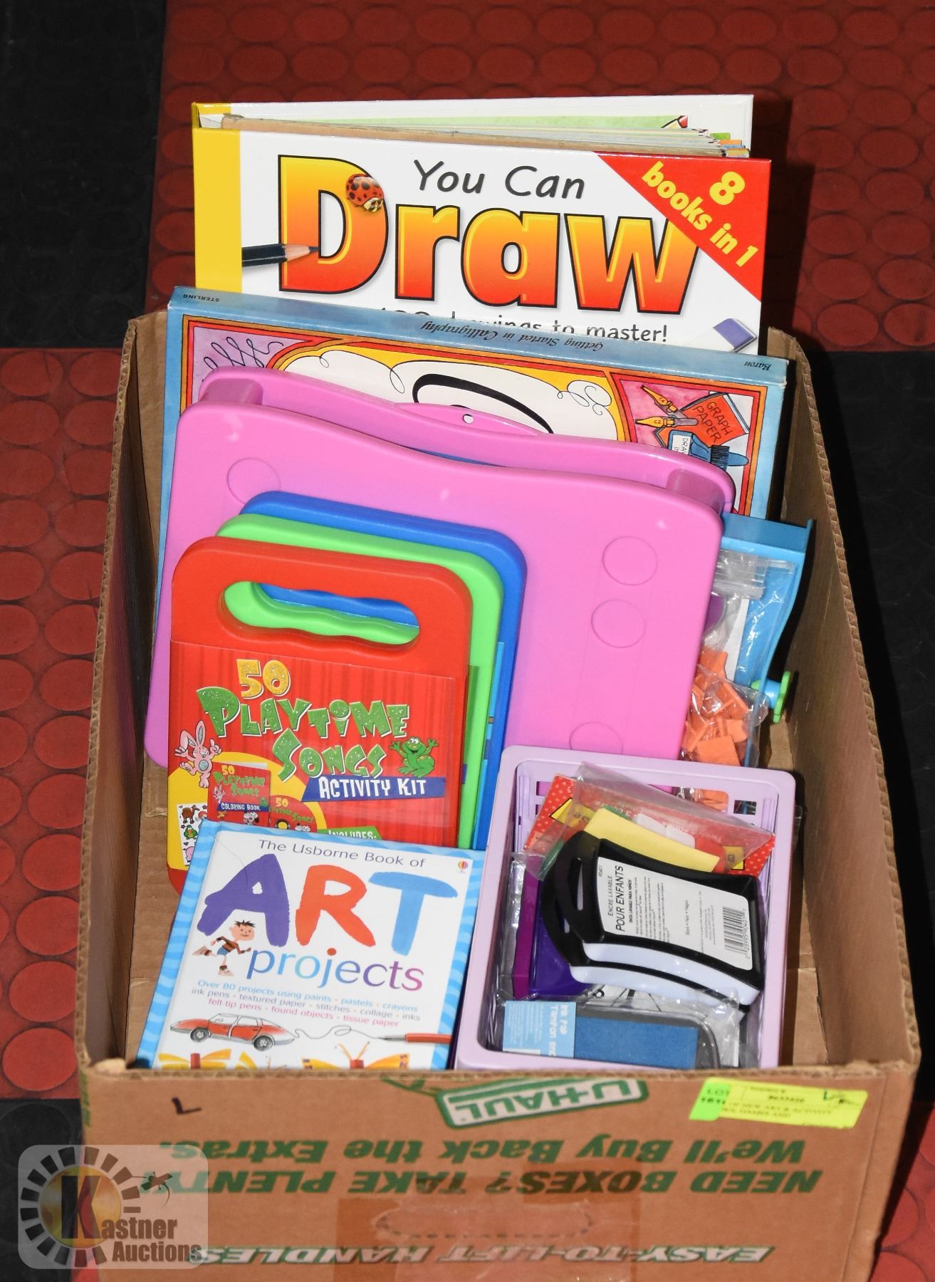SUPPLIES INCL. LARGE "YOU CAN DRAW" - 8-BOOKS-IN-ONE, CALLIGRAPHY, WATERBASE STAMP SET, 3 PLAYTIME SETS WITH CD, 3 USBORNE ART BOOKS - PROJECTS, SKILLS AND IDEAS, ETC.