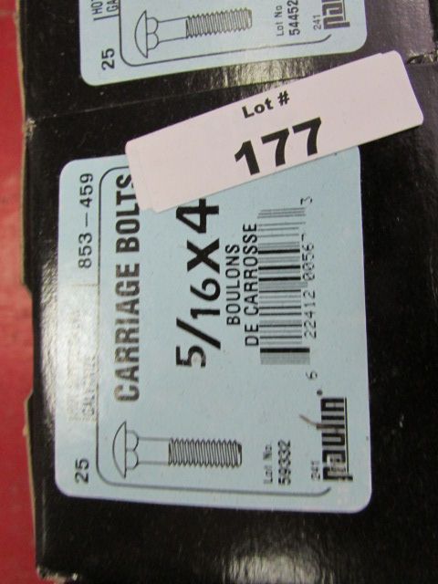BOX OF NEW CARRIAGE BOLTS - 5/16 X 4