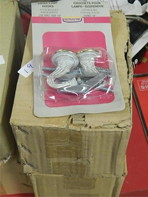 BOX OF NEW CEILING HOOKS - 12 BOXES