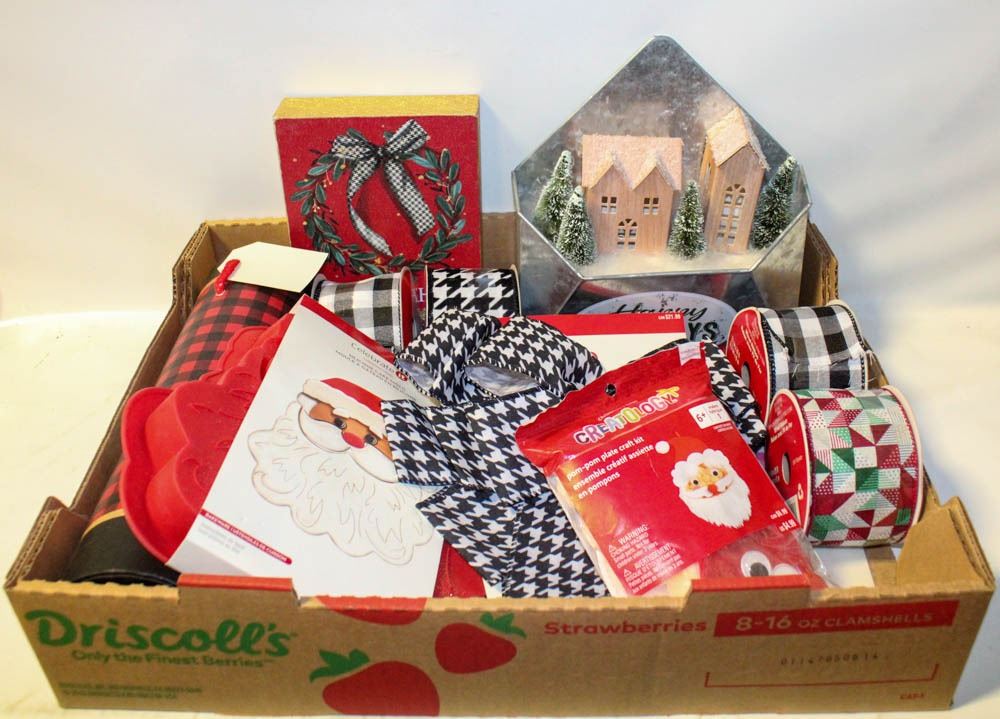BOX OF NEW CHRISTMAS DÉCOR & CRAFT ITEMS