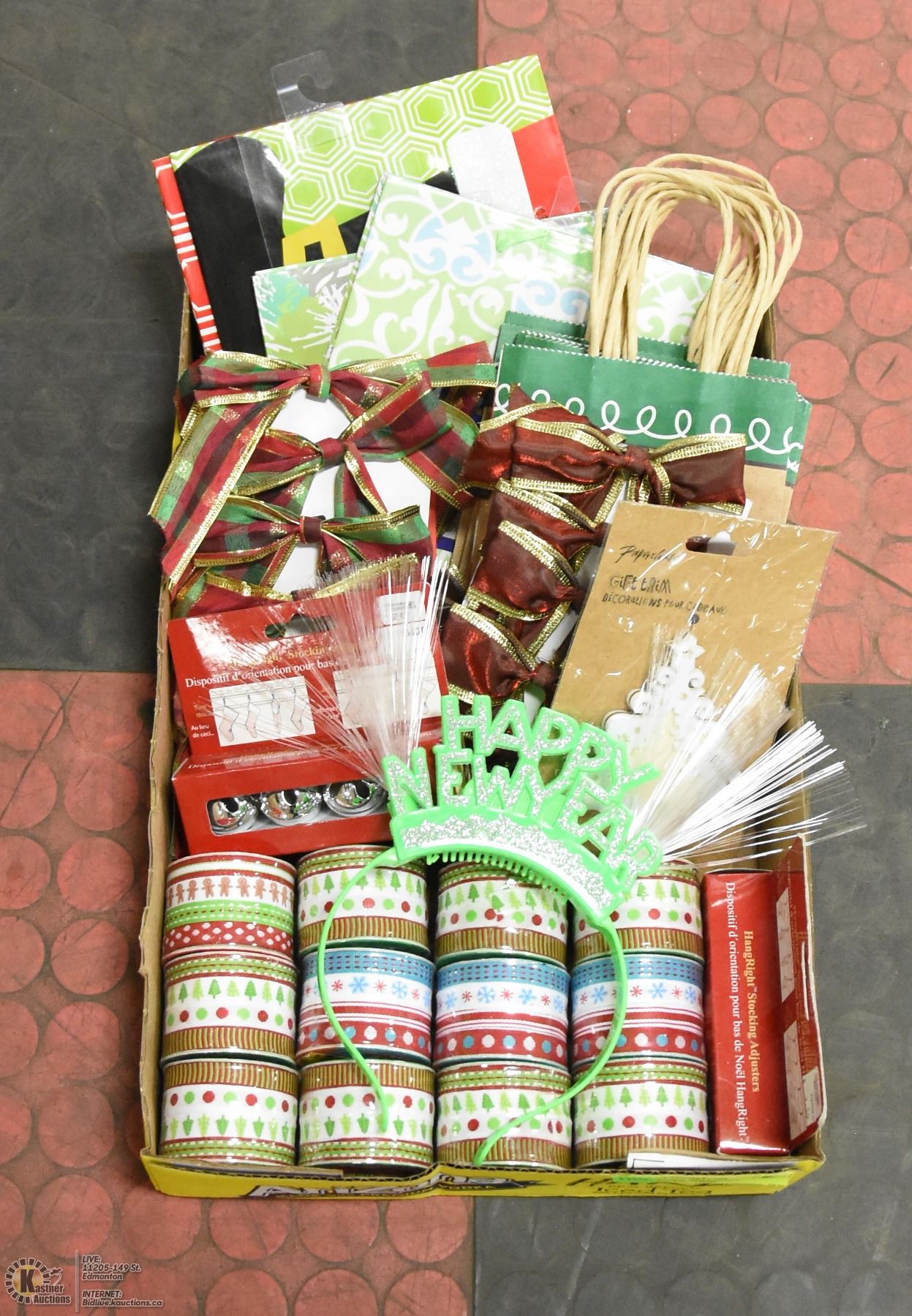 BOX OF NEW CHRISTMAS WRAPPING ITEMS