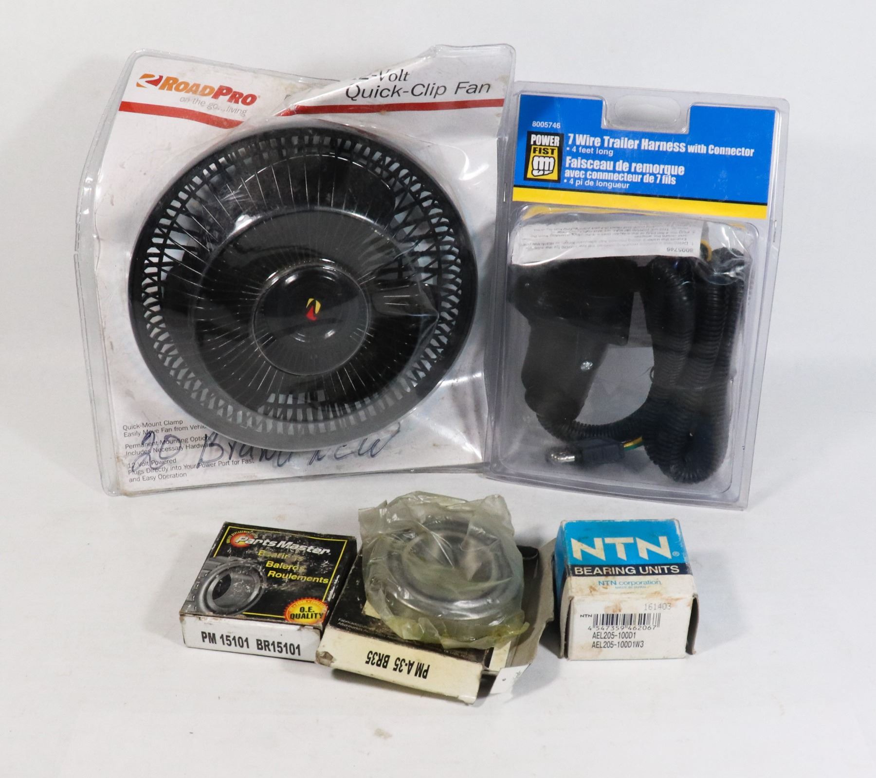 INCLUDING 7 WIRE TRAILER HARNESS (4' LONG), 12V QUICK CLIP FAN, AND SEVERAL BEARINGS