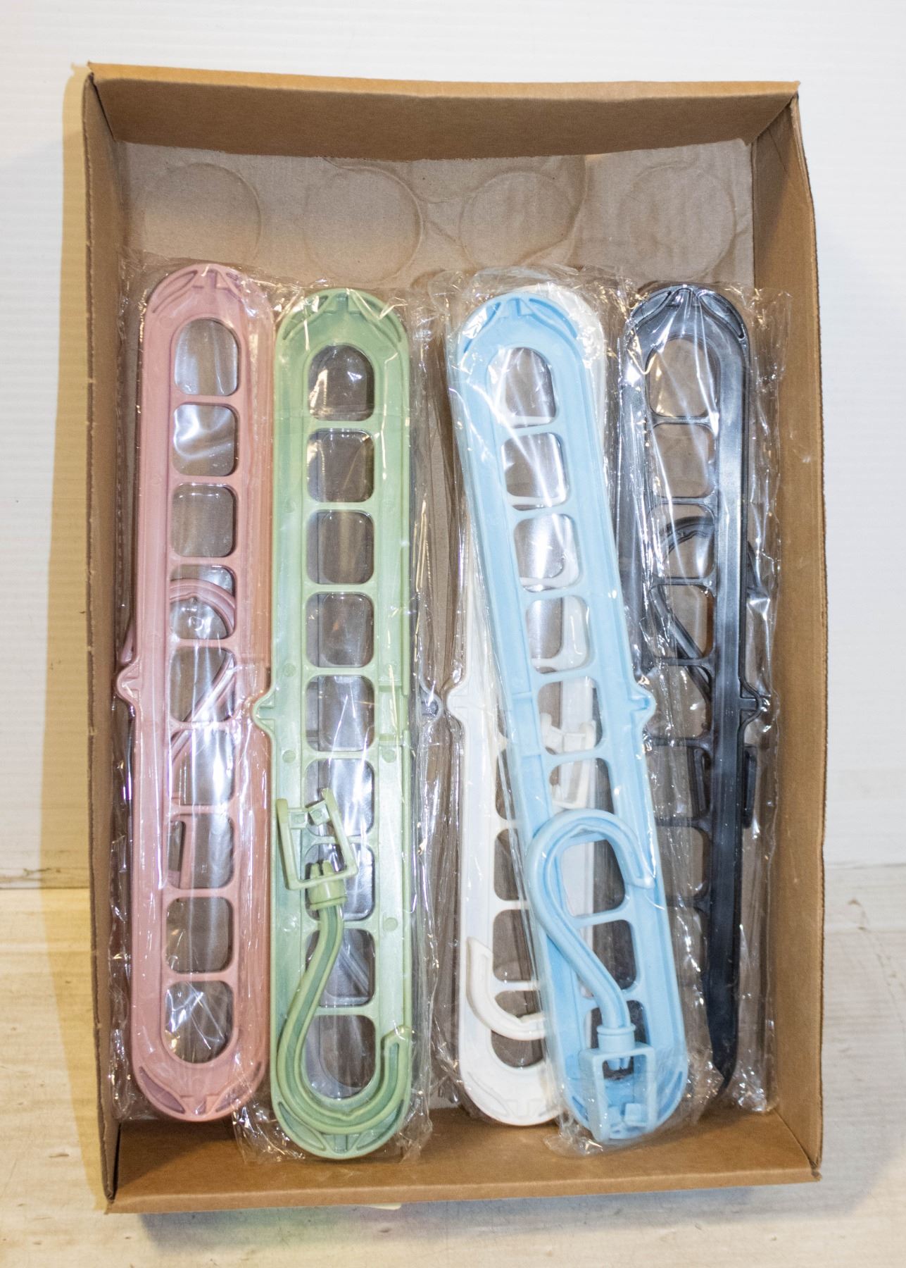BOX OF NEW HANGING ORGANIZERS, EACH HANGER HAS