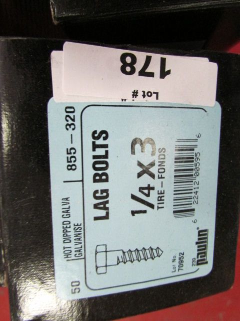 BOX OF NEW LAG BOLTS - 1/4 X 3