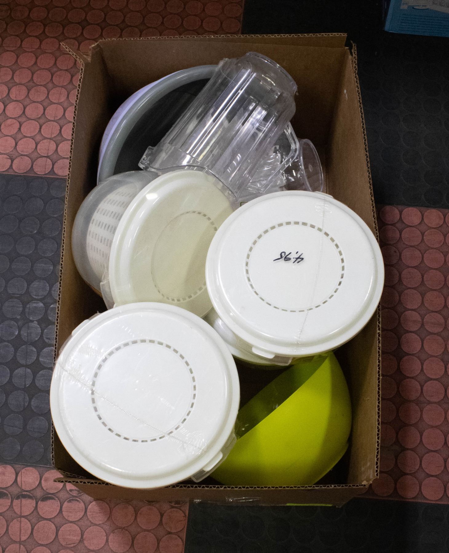 BOX OF NEW OLD STOCK SALAD SPINNERS BOWLS AND MORE