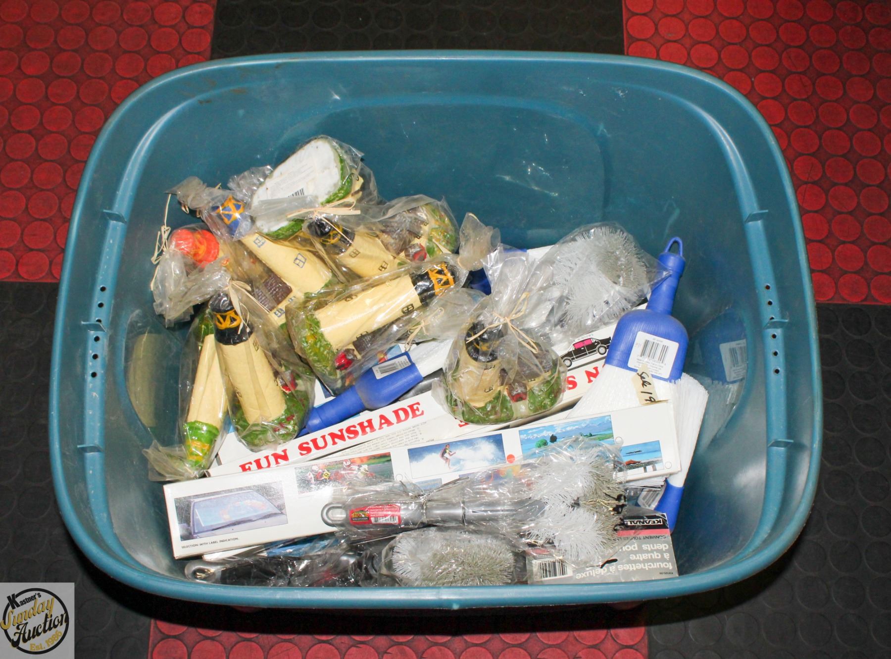 BOX OF NEW OLD STOCK SUNSHADES, CANDLES AND