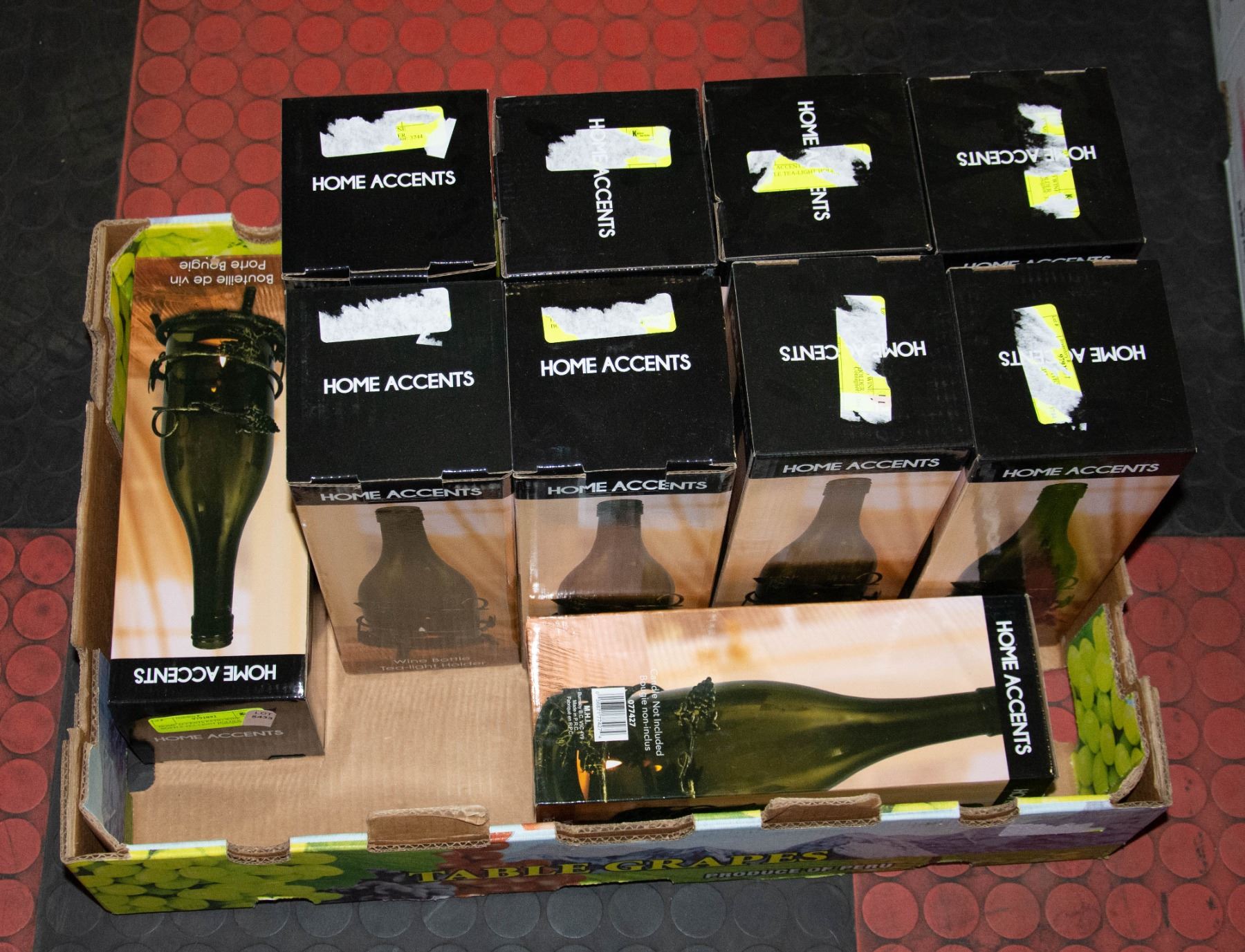 BOX OF NEW WINE BOTTLE CANDLE HOLDERS