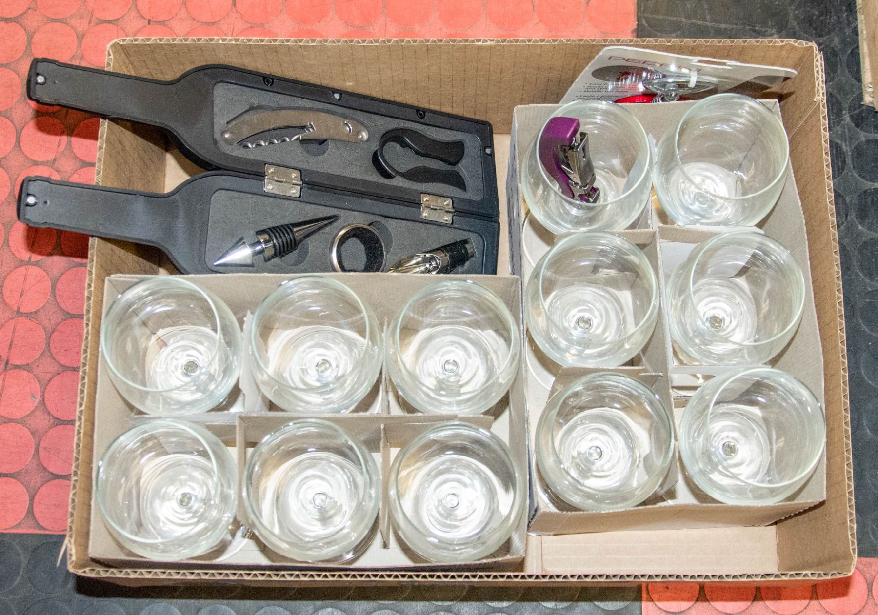 NECESSITIES INCL. 12 WINE GOBLETS, NEW 5-PIECE ACCESSORY SET IN BOTTLE SHAPED STORAGE CONTAINER, NEW PEDRINI WING CORK SCREW **ALL ITEMS MUST BE REMOVED BY 5PM SATURDAY, JANUARY 21ST 2023. ALL MAGIC SPACE ITEMS MUST BE REMOVED BY WEDNESDAY, JANUARY 18TH AND ARE LOCATED AT 9058-22 AVENUE SW #102. **ALL REMAINING ITEMS WILL BE SUBJECT TO A $6.00 PER DAY STORAGE CHARGE. ANY ITEMS REMAINING AFTER MONDAY, FEBRUARY 6TH, 2023 WILL BE CONSIDERED FORFEITED. NO REFUNDS WILL BE ISSUED FOR FORFEITED ITEMS. TO SCHEDULE A PICK UP APPOINTMENT CLICK HERE