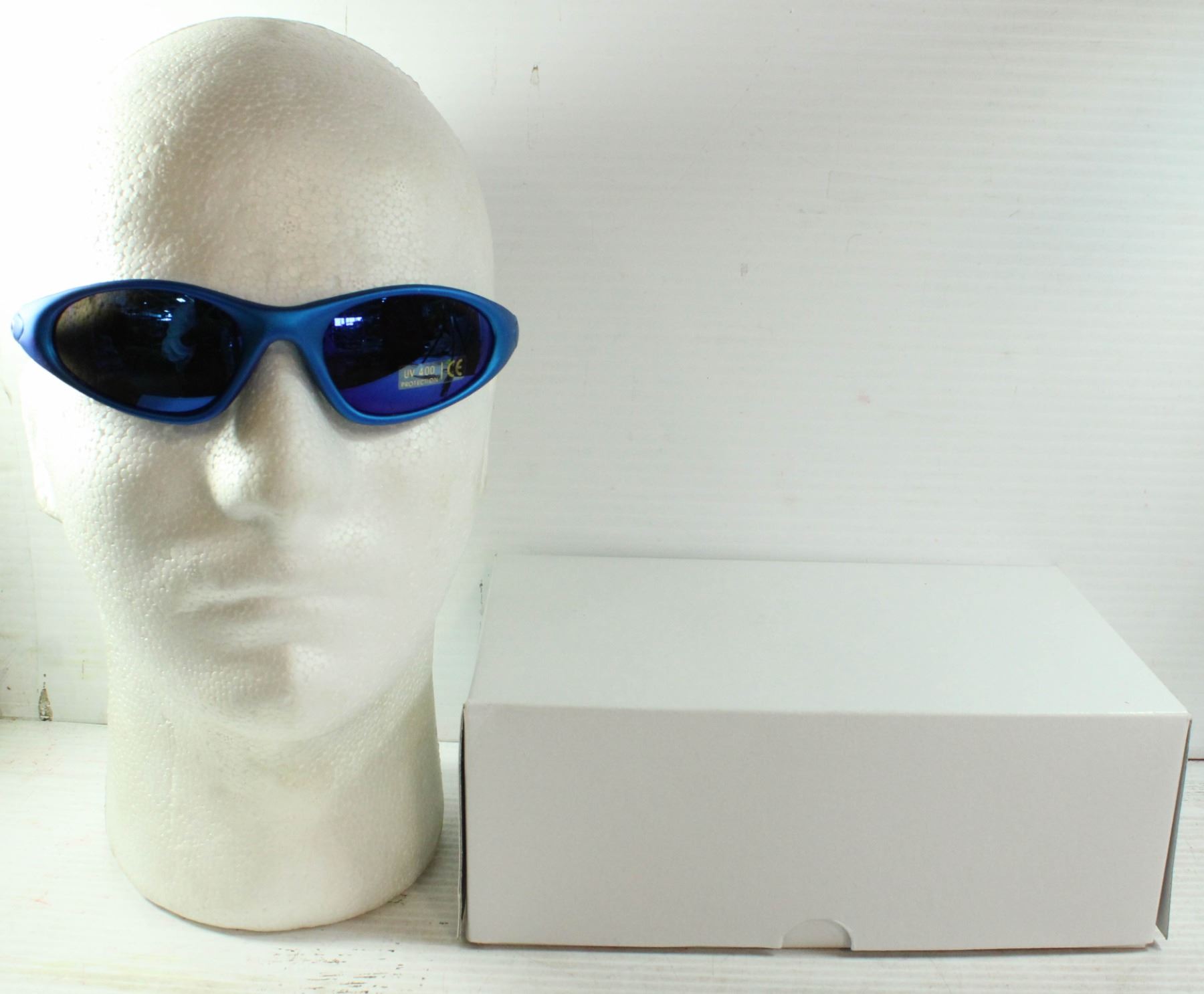 BOX OF OAKLEY STYLE BLUE SUNGLASSES.