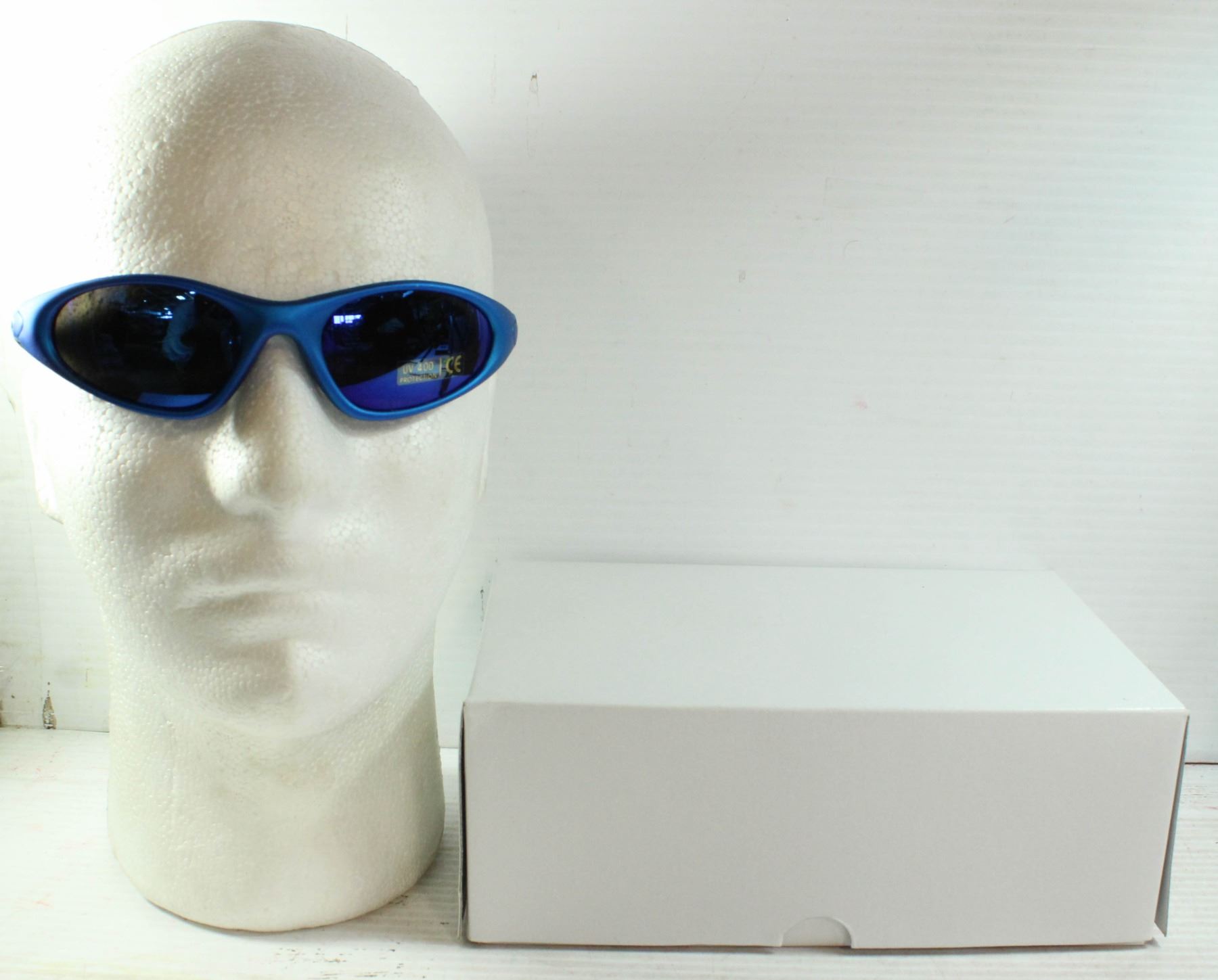 BOX OF OAKLEY STYLE BLUE SUNGLASSES.