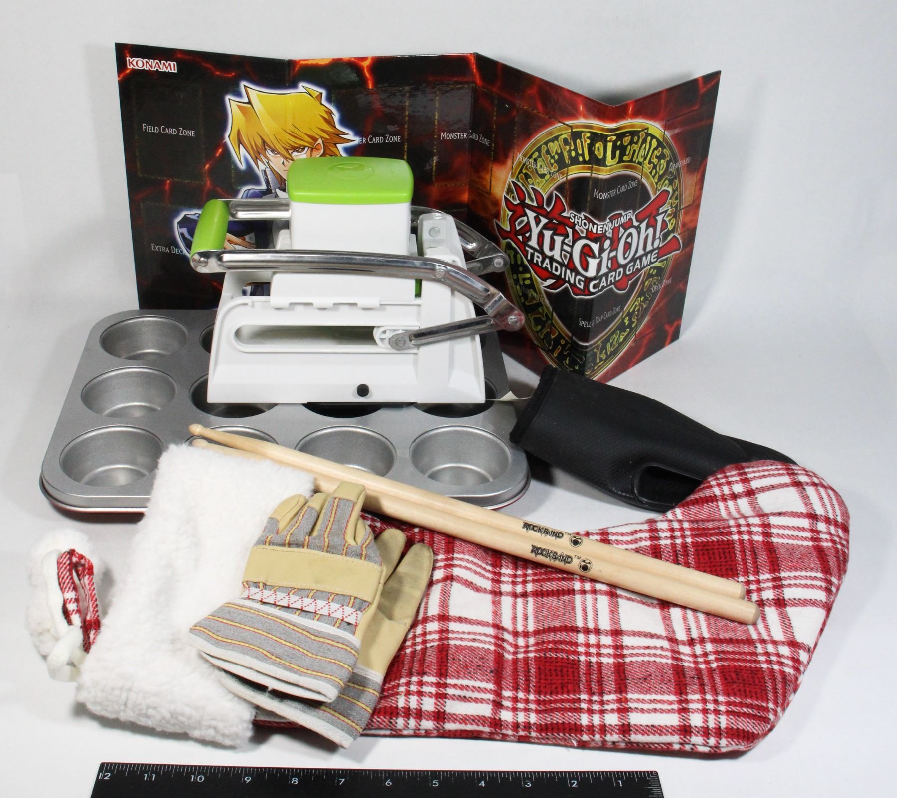 BOX OF ODDS AND ENDS INCLUDING HEAVY MUFFIN TIN,