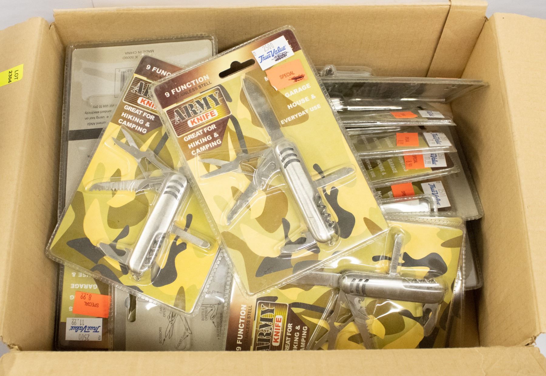 BOX OF OF 9 FUNCTION STAINLESS STEEL ARMY KNIVES