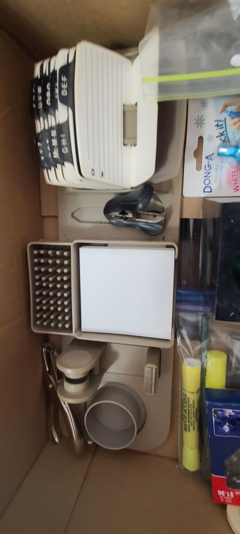 BOX OF OFFICE SUPPLIES AND STATIONARY