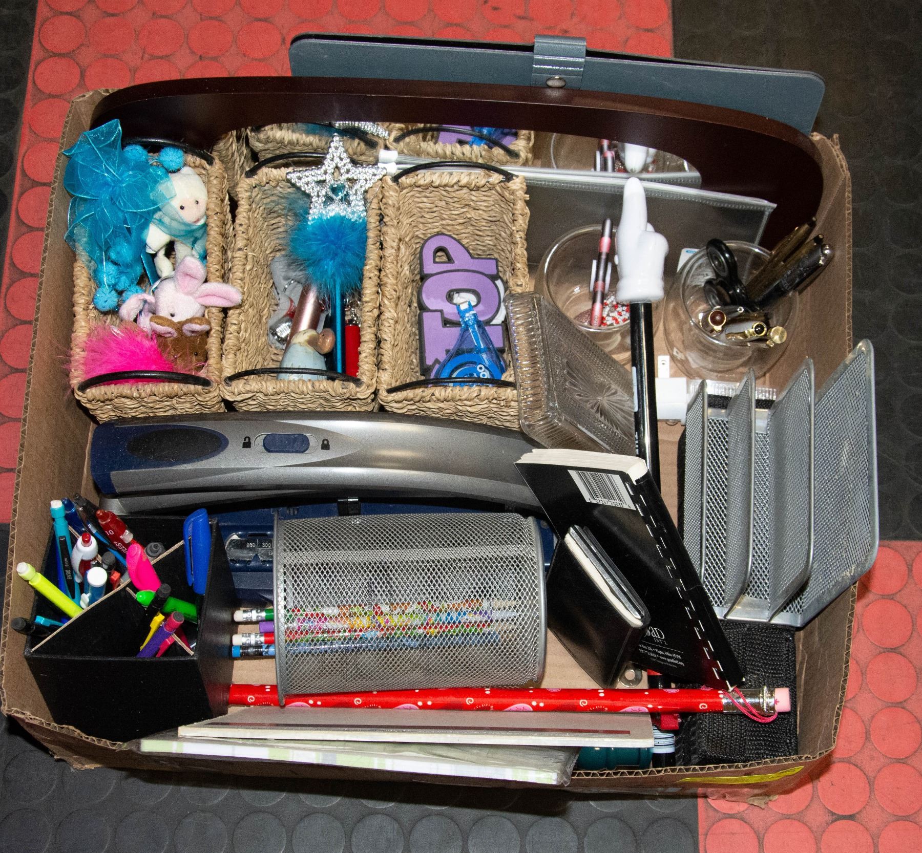 ONE-TOUCH 3-HOLE PUNCH, FUN PENS, SORTERS, MIRROR, ETC.