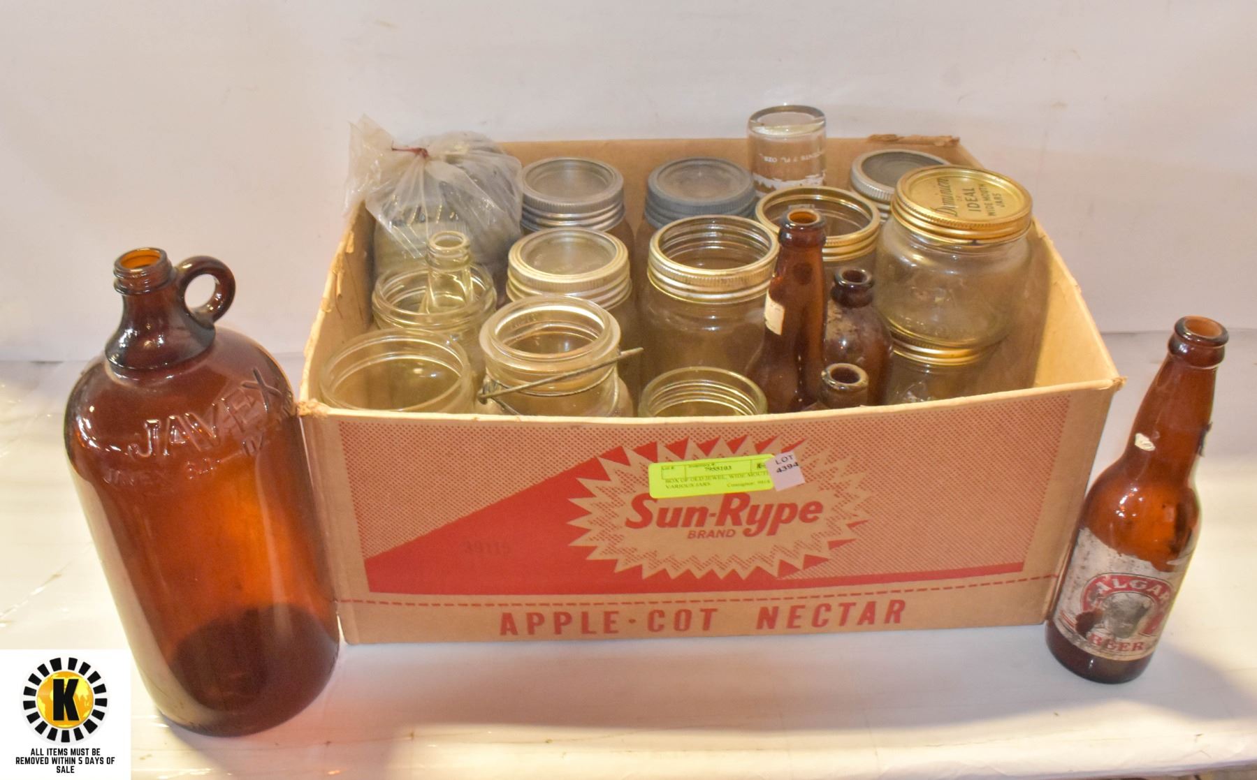 BOX OF OLD JEWEL, WIDE MOUTH & VARIOUS JARS