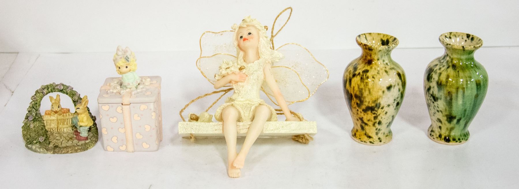 FAIRY ON A SWING, ONE MEMENTO BOX, ONE RABBIT ON AN ARCH, TWO SMALL VASES
