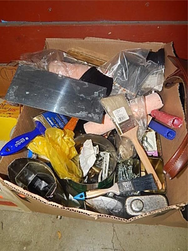BOX OF PAINTING, TOOLS & OTHER