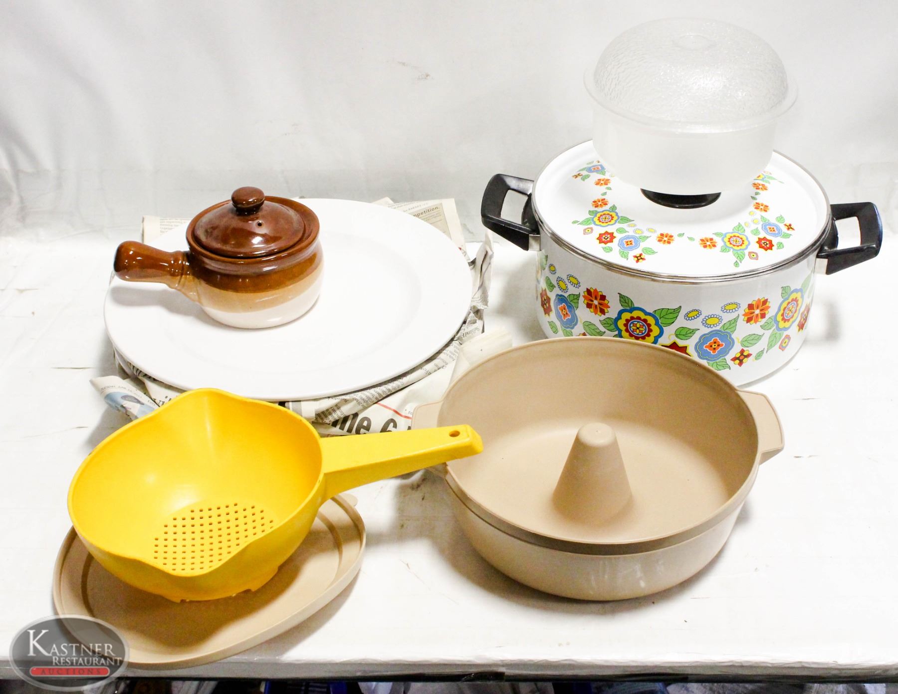 BOX OF PIZZA DISHES/ ONION BOWLS