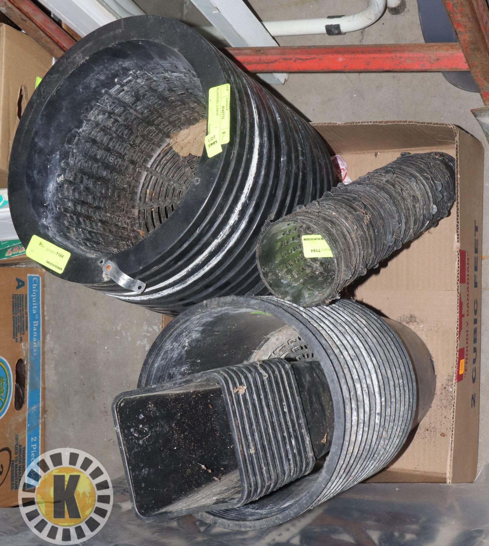 BOX OF PLASTIC PLANTERS, ASSORTED SIZES