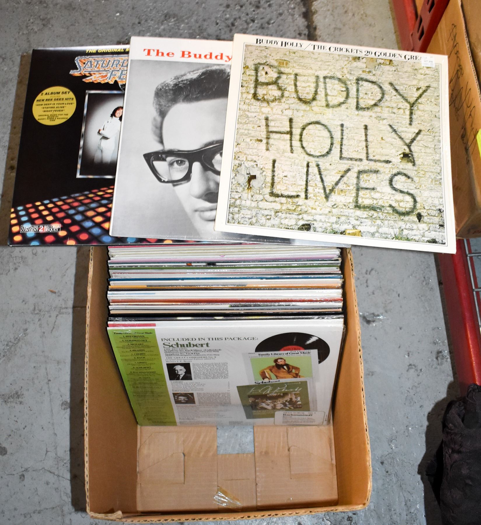 BOX OF RECORDS INCLUDES BUDDY HOLLY