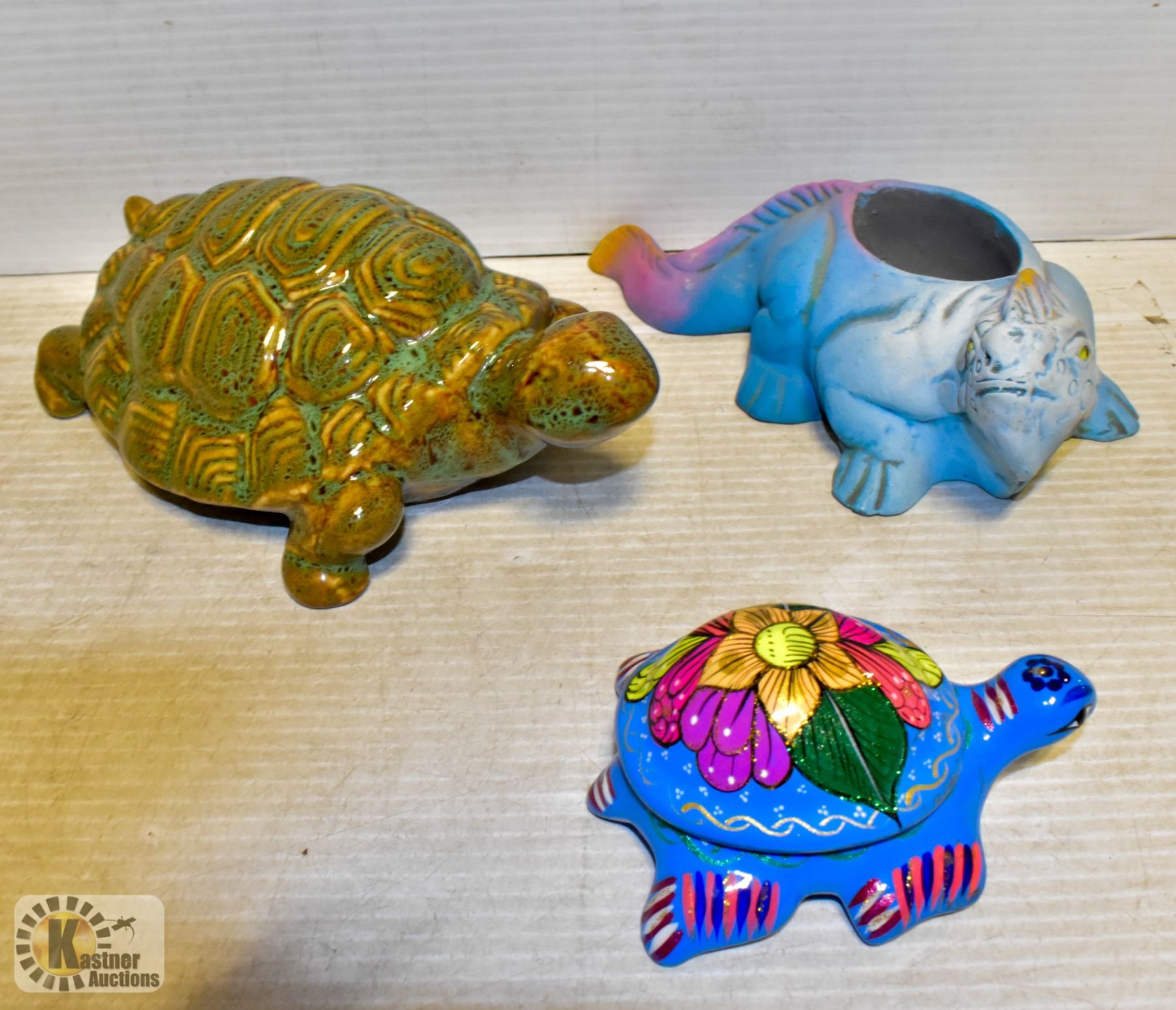 MEXICAN TURTLE TRINKET BOX AND AN IGUANA CANDLE BASE