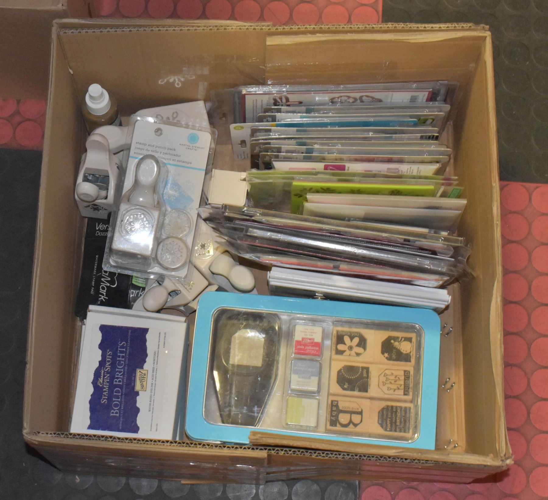 BOX OF SCRAPBOOKING SUPPLIES; STAMPS, INKS