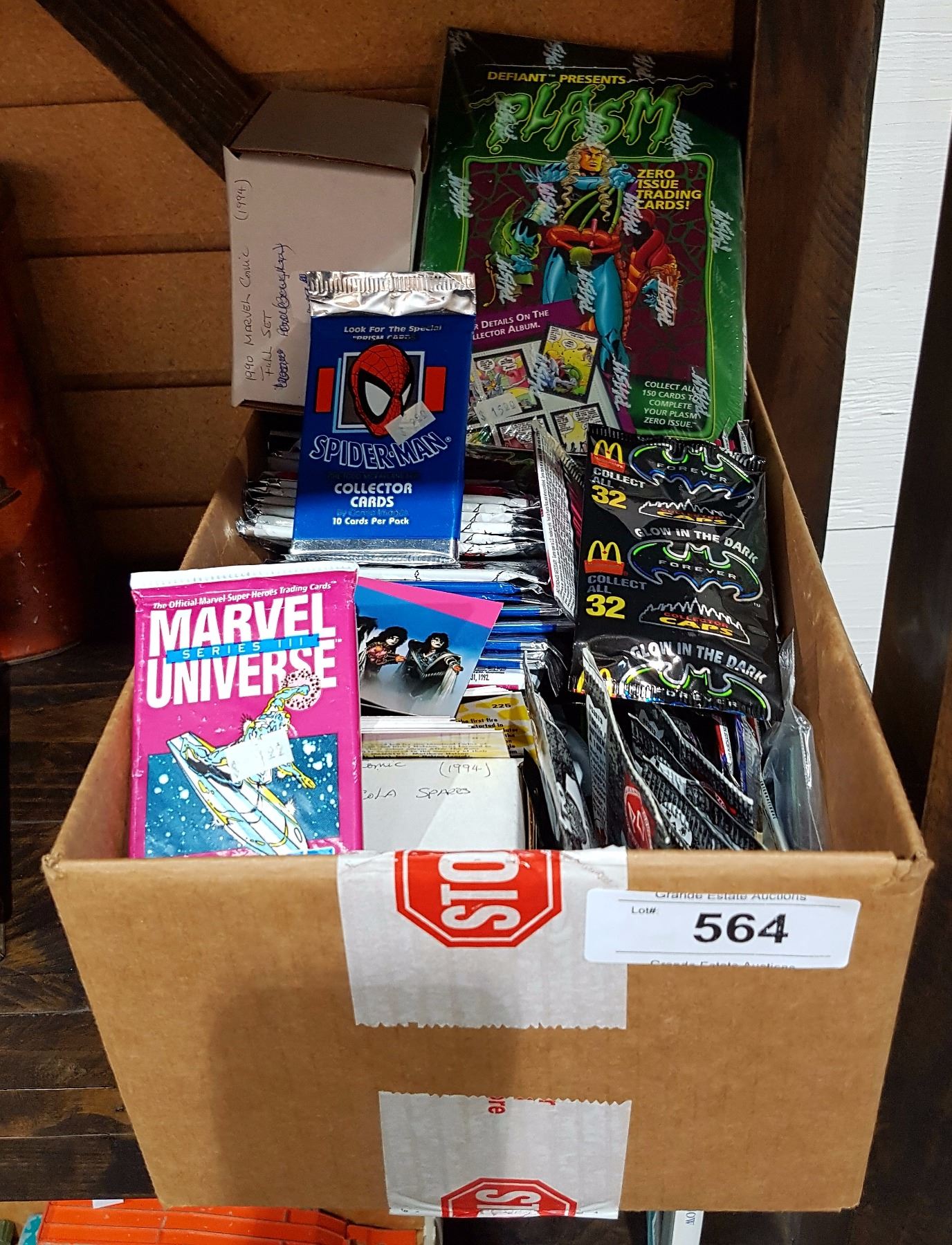 BOX OF SEALED MARVEL, SPIDERMAN, BATMAN, SPACEJAM, ETC. TRADING CARDS