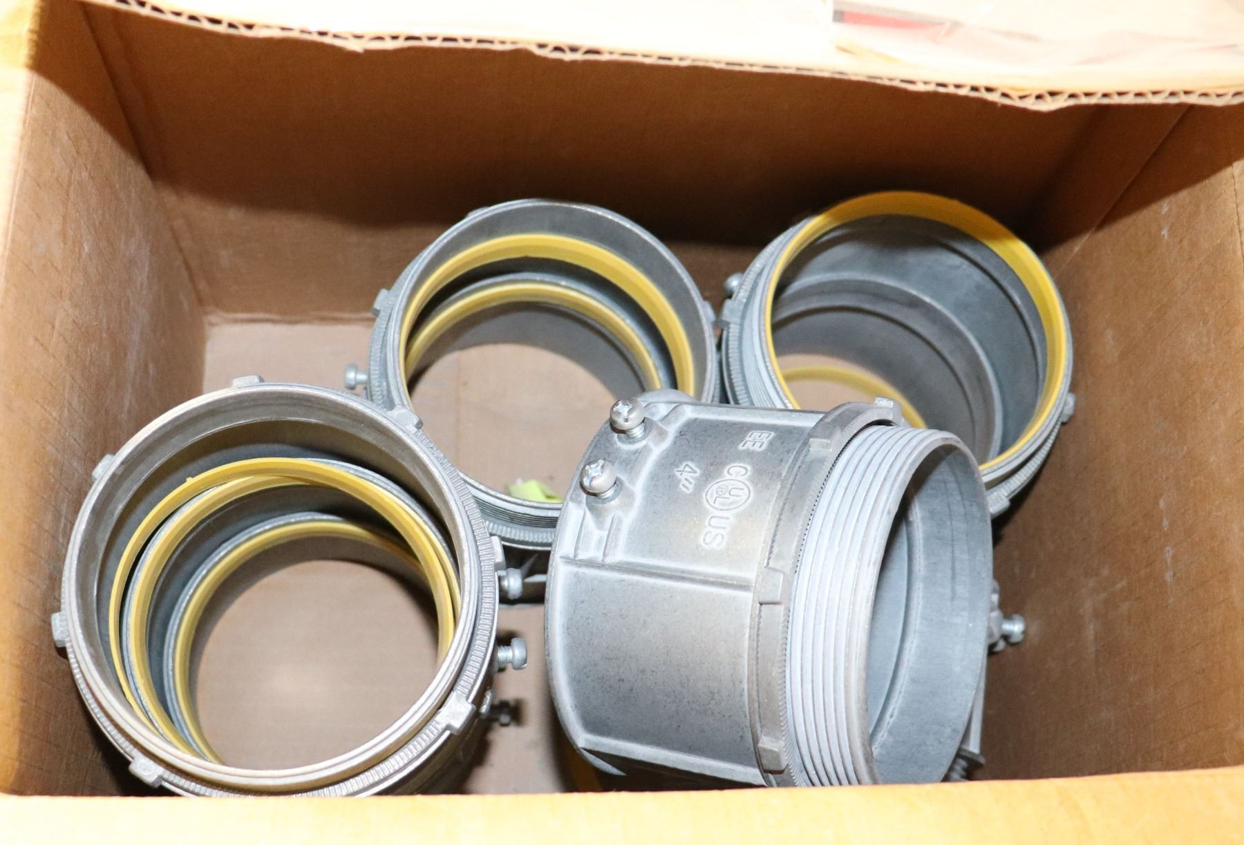 BOX OF SEVERAL 4" METAL PIPE ENDS
