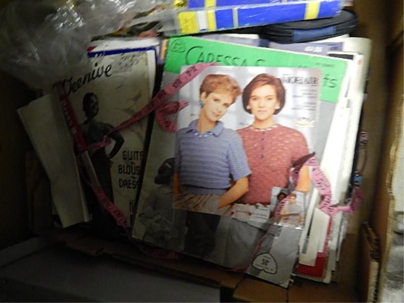 BOX OF SEWING ACCESSORIES, PATTERNS ETC
