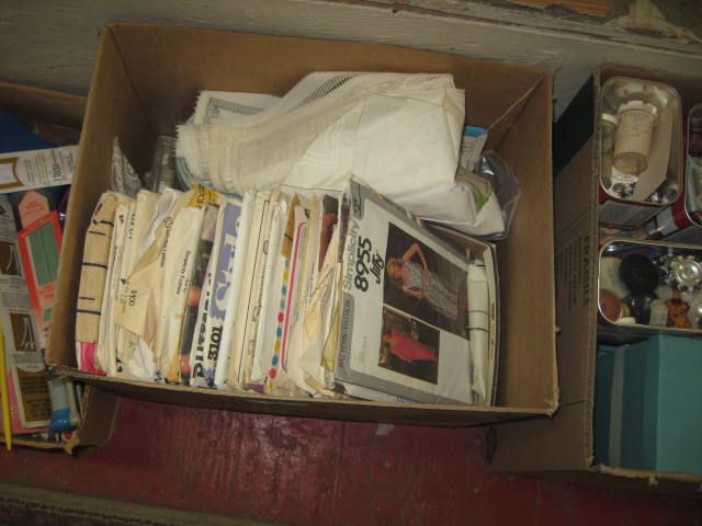 BOX OF SEWING PATTERNS ETC - PLAYER'S TOBACCO CAN