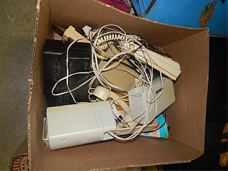 BOX OF SPEAKERS AND OTHER ELECTRICAL ITEMS