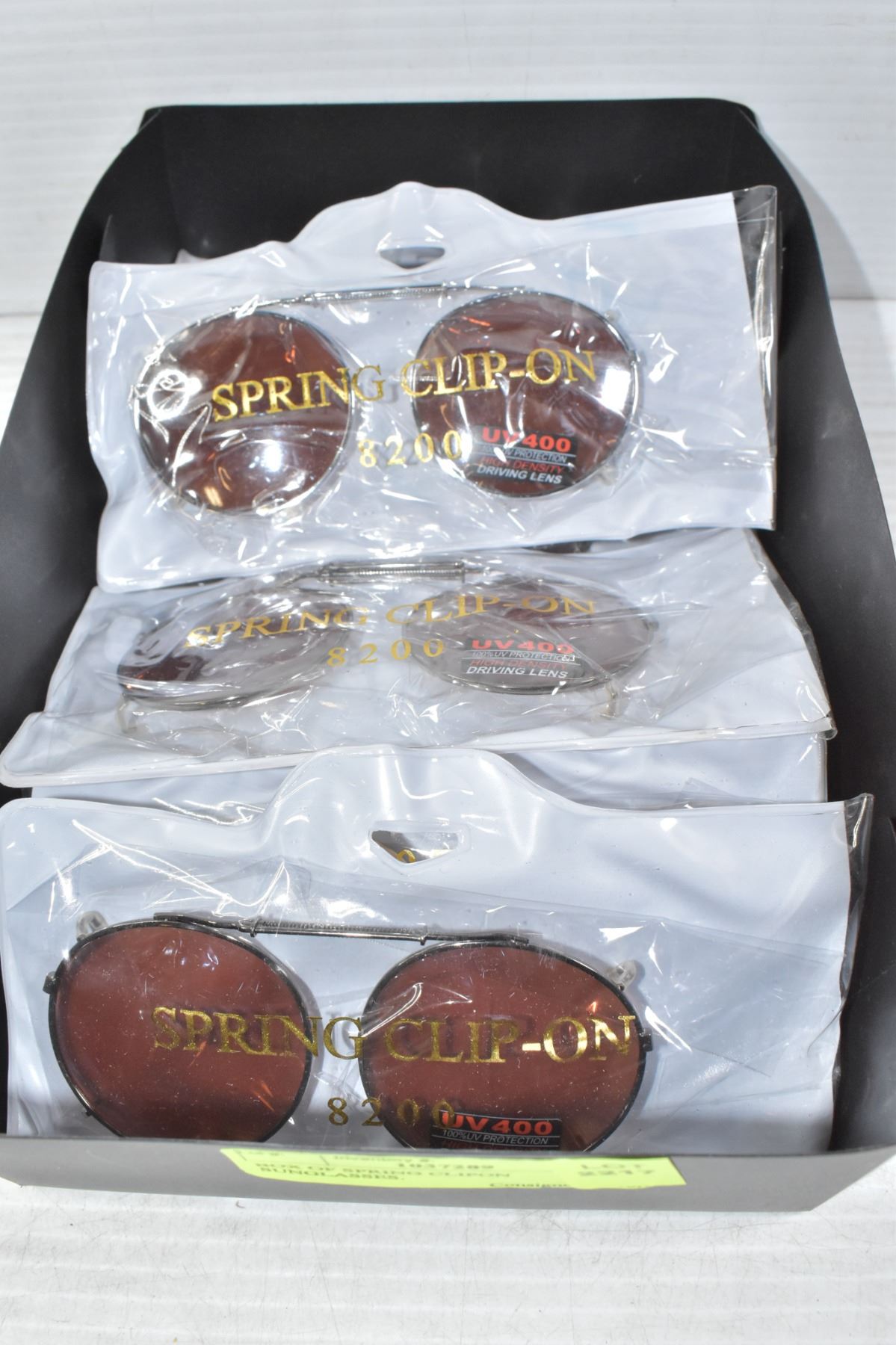 BOX OF SPRING CLIPON SUNGLASSES.