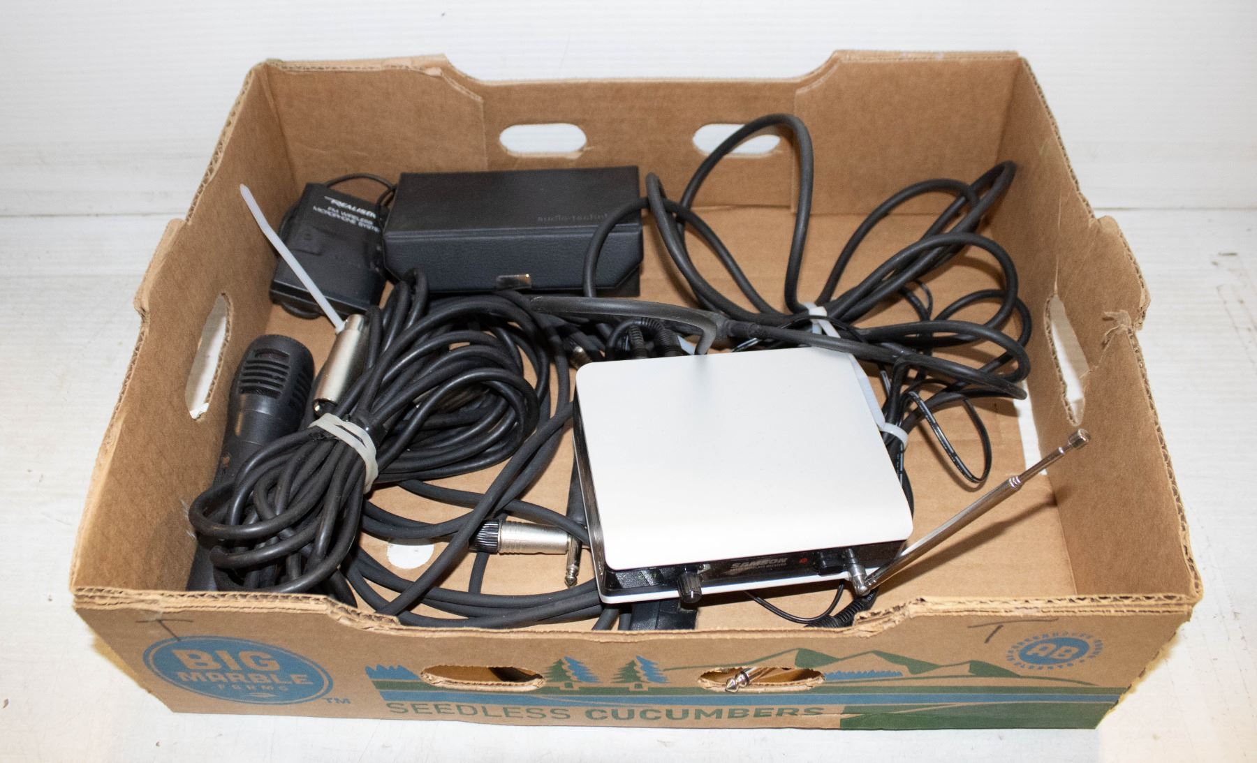 MICROPHONES INCL. AUDIO TECHNICA CLIP-ON MIC, SAMSON WIRELESS RECEIVER, REALISTIC MIC AND STAGE CORDS
