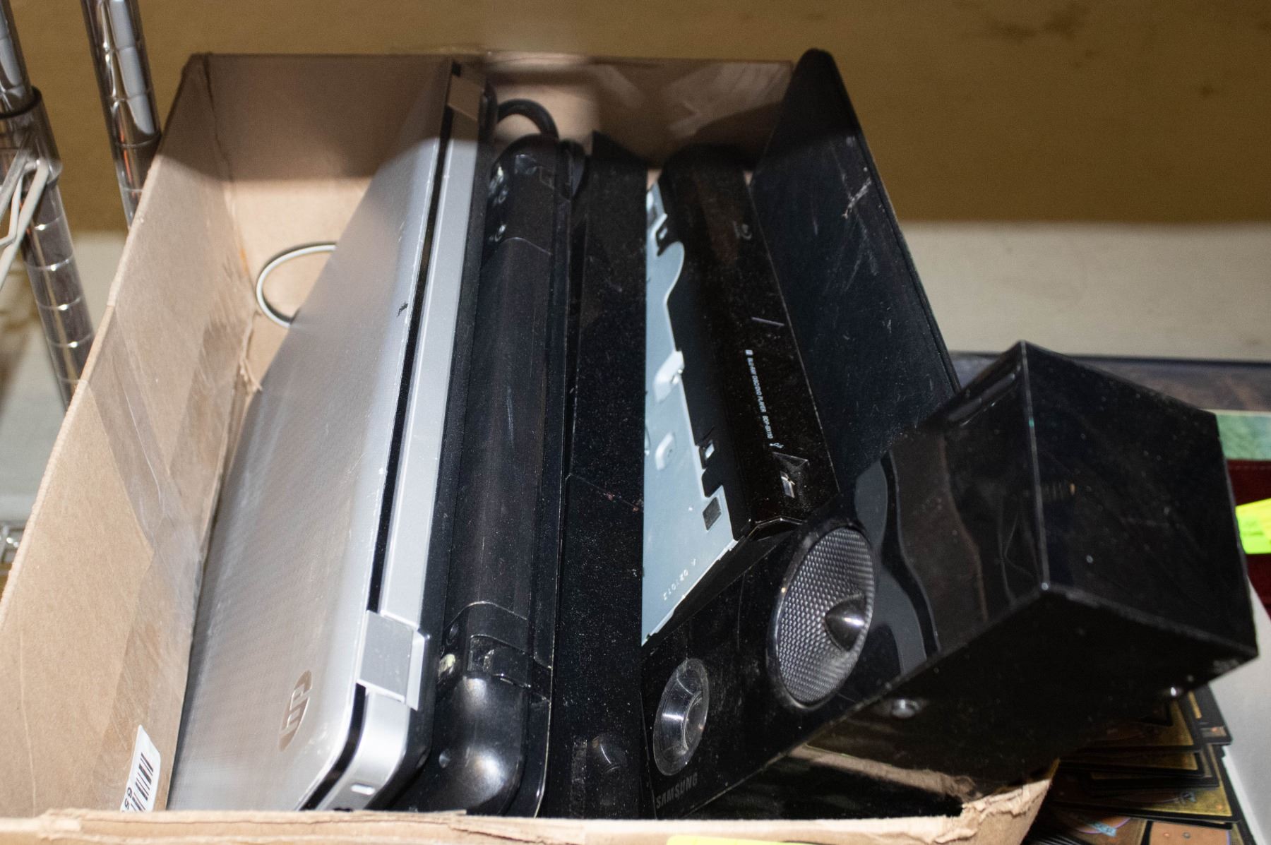 3 LAPTOPS - TWO HP, 1 TOSHIBA, SAMSUNG DVD PLAYER, SONY BLU-RAY PLAYER, SAMSUNG CENTER SPEAKER, REMOTES, CORDS, ETC. (UNTESTED - MAY HAVE PASSWORD PROTECTION)