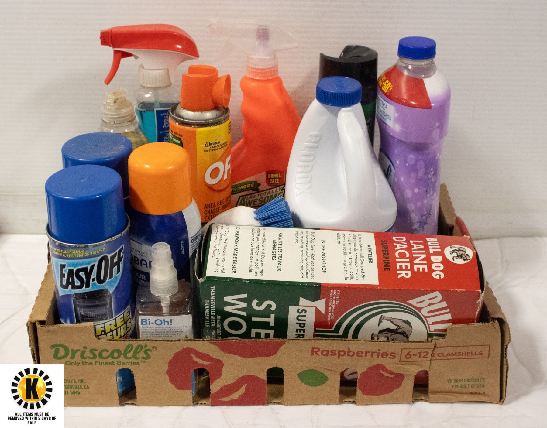 BOX OF SURPLUS HOME CLEANERS MOSTLY FULL OR NEW