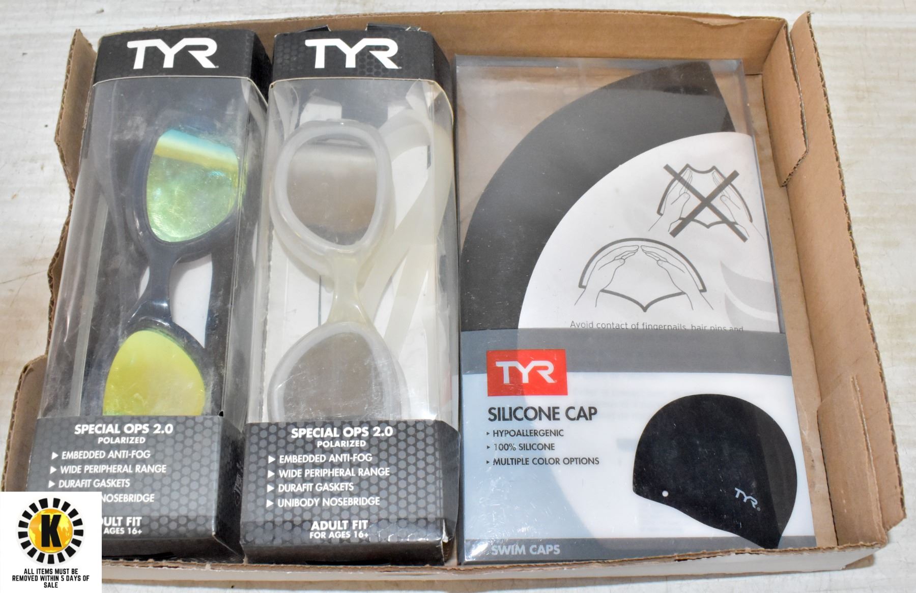 BOX OF SWIMMING GOGGLES ANDSWIM CAP