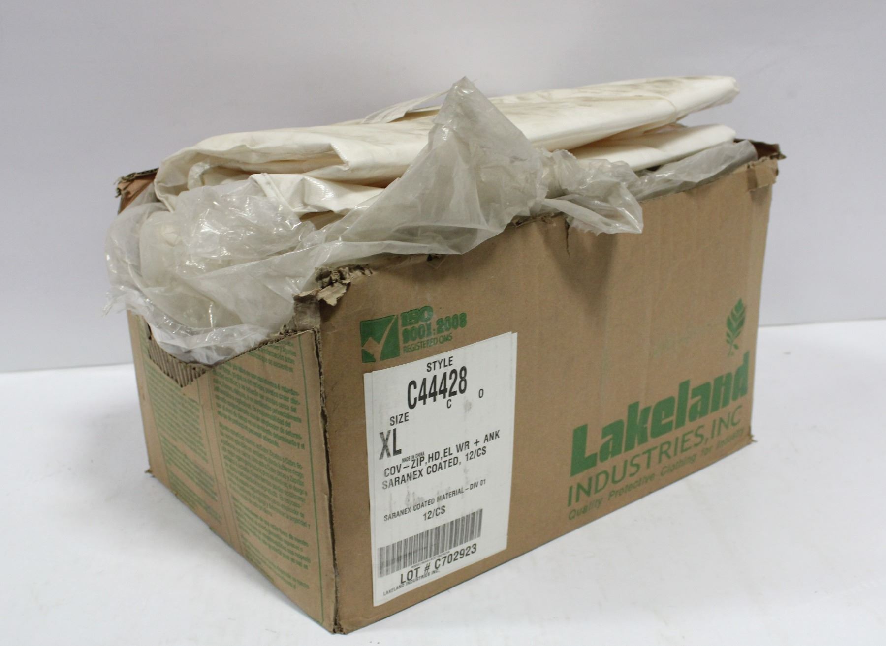 BOX OF SZ XL DISPOSABLE CHEMICAL COVERALLS