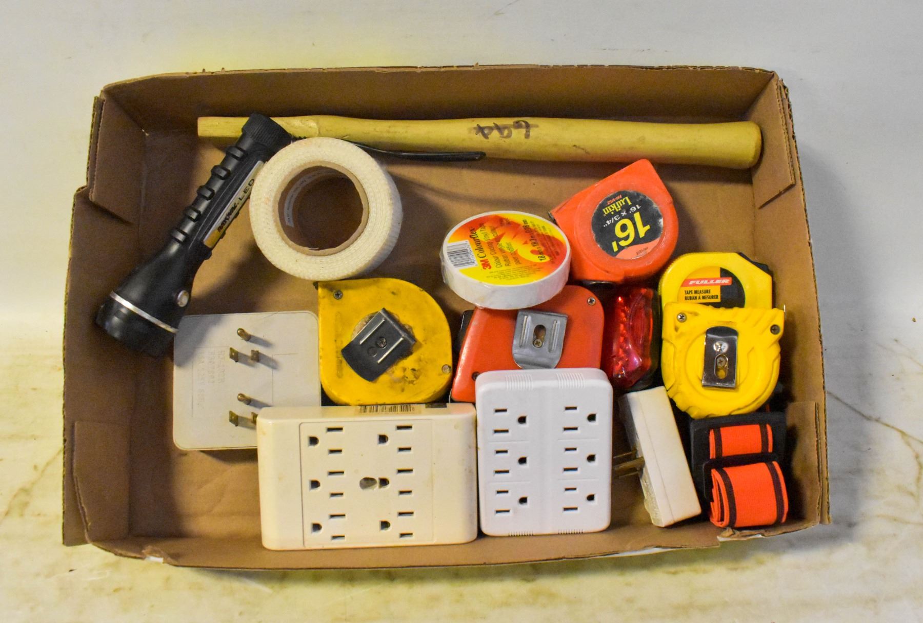 BOX OF TAPE MEASURES AND MULTI-PLUGS