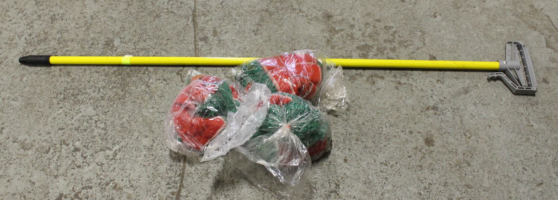 BOX OF THREE MOP HEADS /W MOP HANDLE