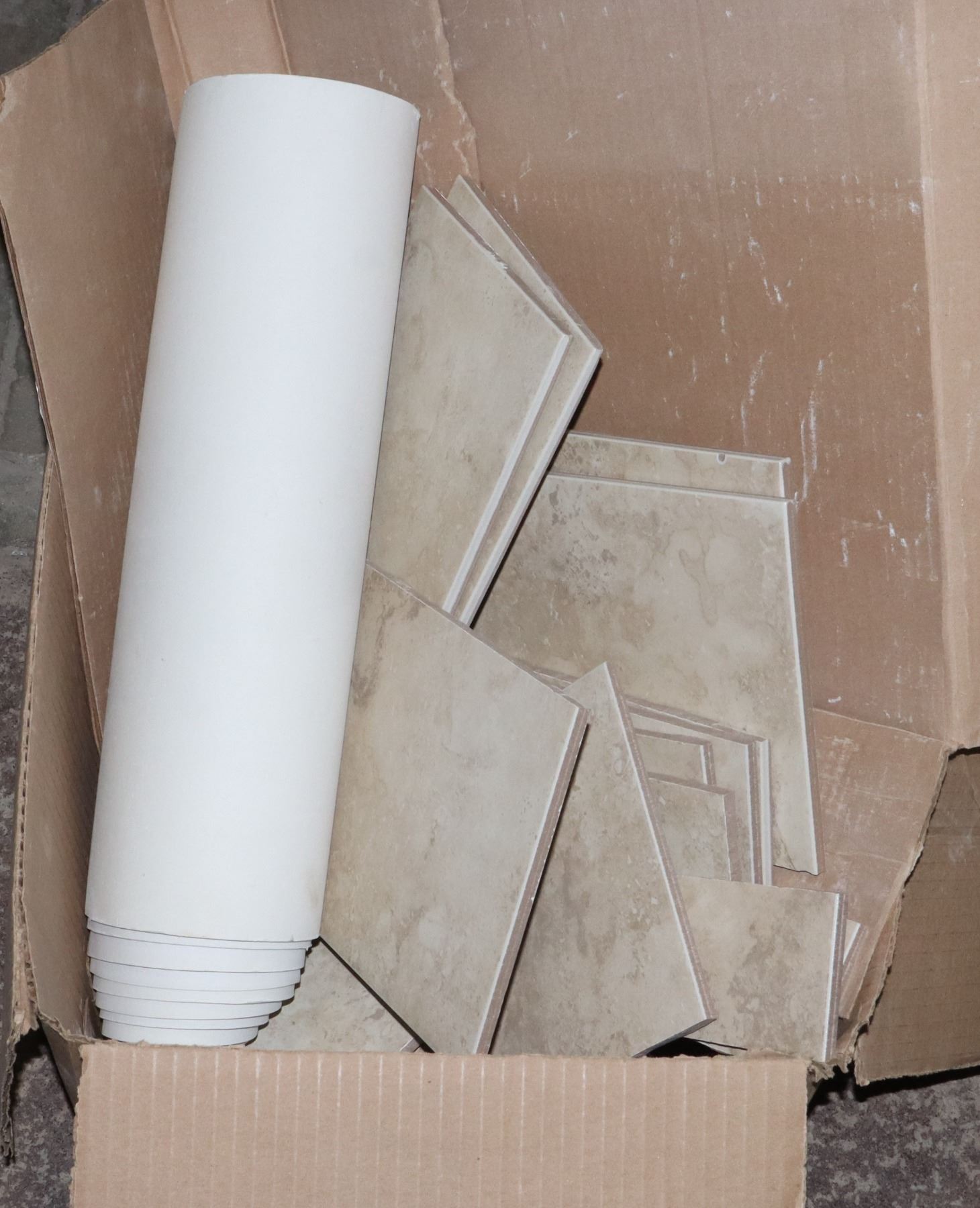 BOX OF TILES AND VINYL