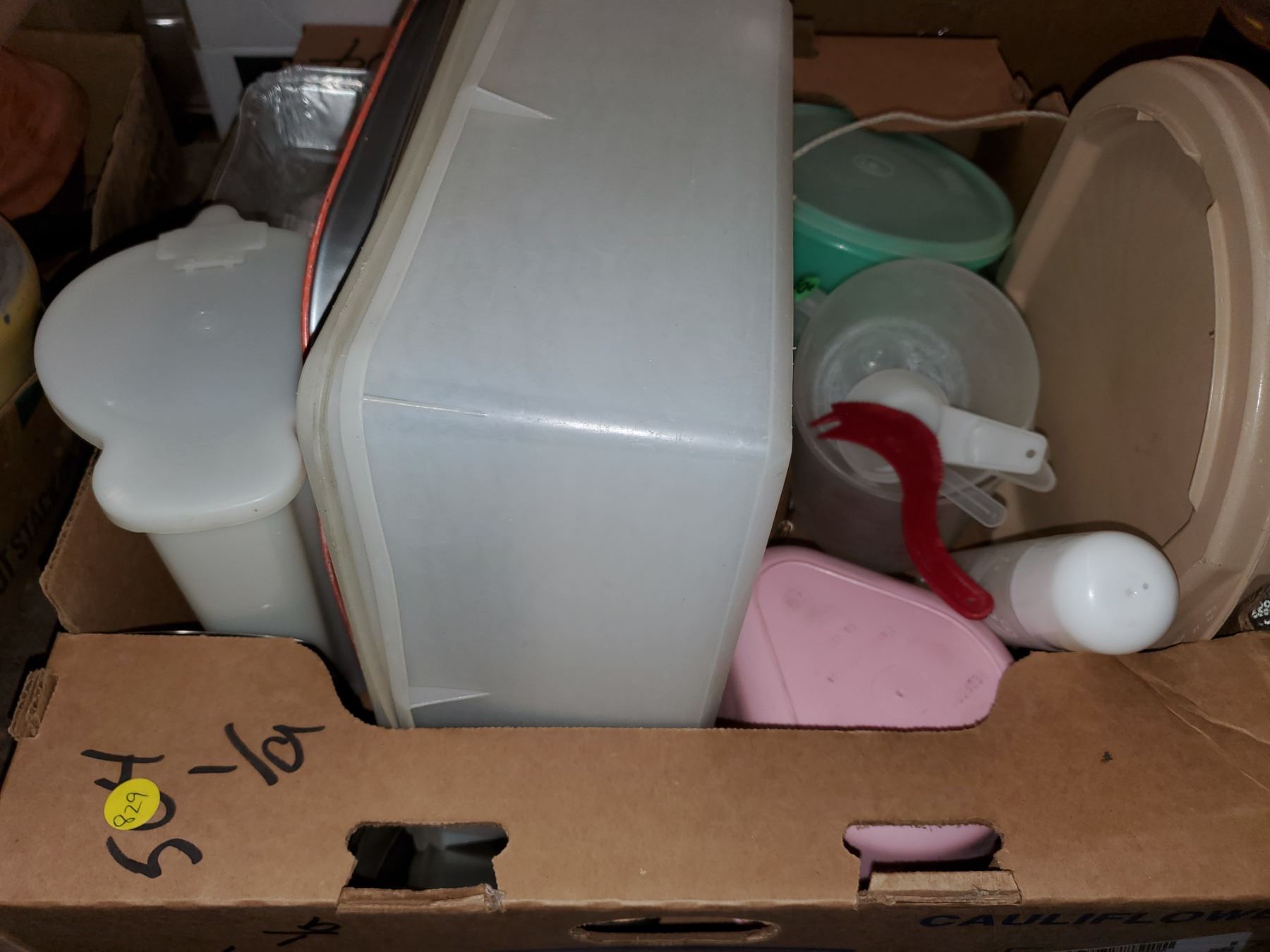 BOX OF TUPPERWARE + OTHER PLASTIC DISHES